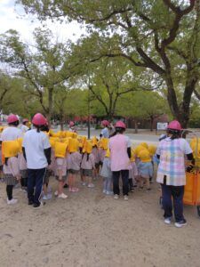 保育園では、子どもたちの命を守るために 広域避難訓練 を行っています。