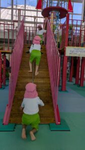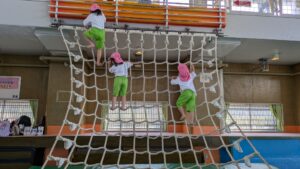 のびのび広場では、網を登る遊具に挑戦!はじめは怖がっていたお友だちも、何度も挑戦するうちに少しずつ自信をつけて、笑顔で登れるようになっていました。