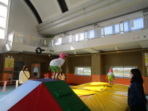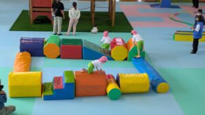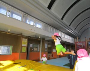 のびのび広場では、網を登る遊具に挑戦!はじめは怖がっていたお友だちも、何度も挑戦するうちに少しずつ自信をつけて、笑顔で登れるようになっていました。