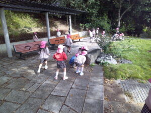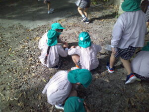 木々に囲まれながら、自然の中でのびのびと探索活動を楽しみました。