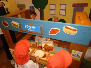 キッズストリートでは、郵便屋さん・工事現場・お医者さんなど、いろいろなお仕事になりきって楽しみました。